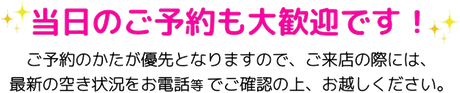 お電話でご予約いただいた場合は、前日にご案内メールは届きませんので、あらかじめご了承ください。